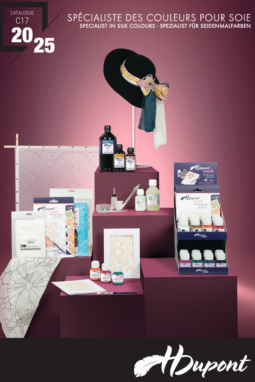 创立于1890年的 H. Dupont,由“时装调色师”Henri Dupont一手开创,专注丝绸与动物纤维的专业染料。色泽通透、层次细腻,成为丝绘艺术家的经典之选。至今仍在欧洲生产,坚持“蒸汽固色 / 热固色”的匠心工艺,用丰富的色阶让法式艺术与丝绸、羊毛纺织传统在当代继续闪耀。