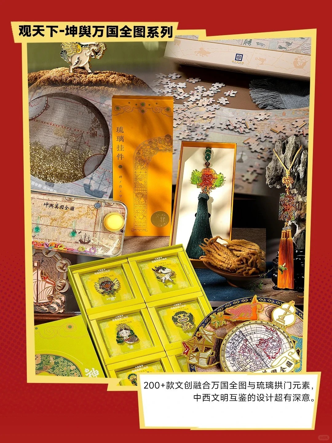 ·“观天下--坤舆万国全图系列”:200+款文创融合万国全图与琉璃拱门元素,中西文明互鉴的设计超有深意。