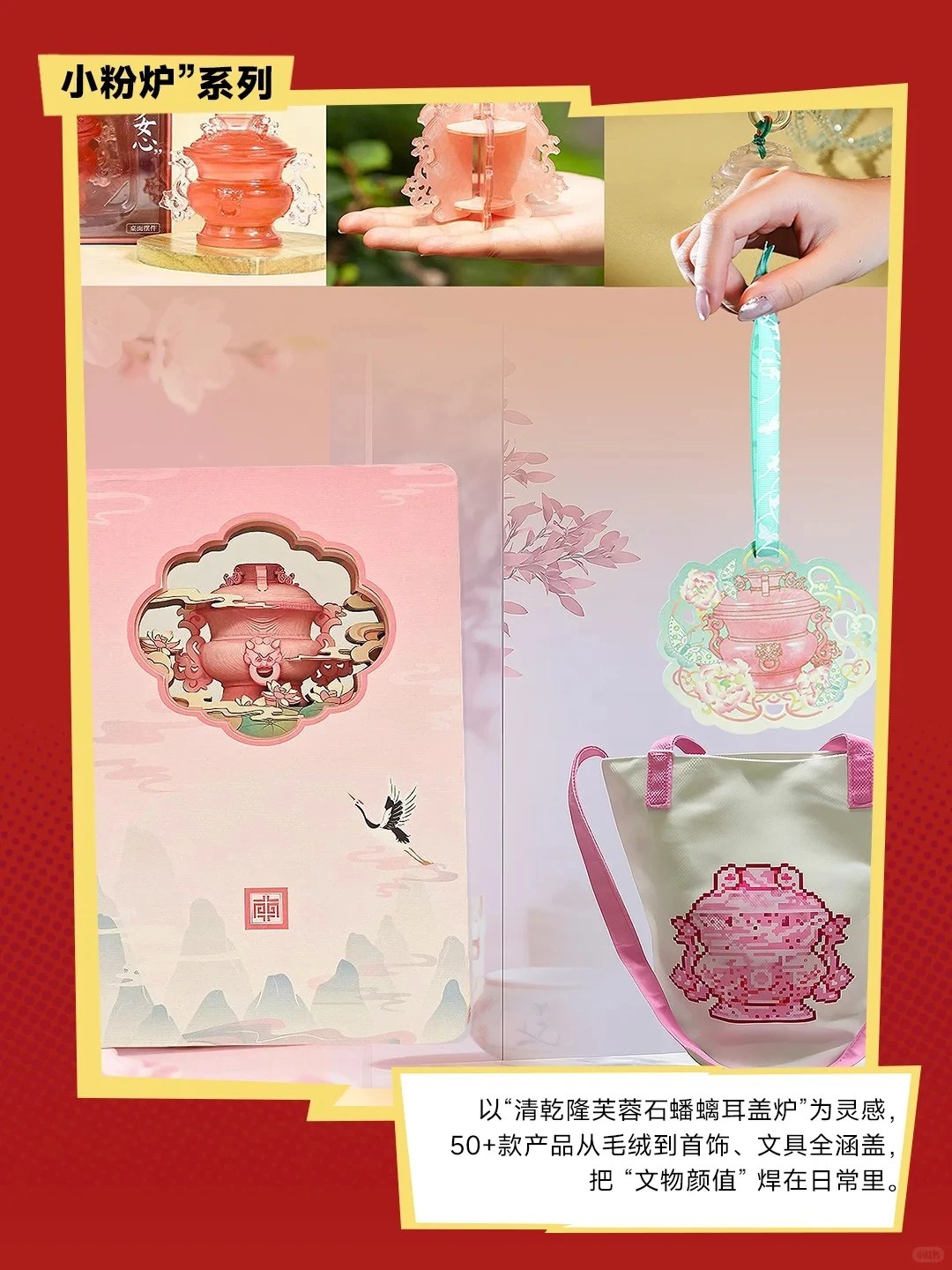 ·“小粉炉”系列:以“清乾隆芙蓉石蟠螭耳盖炉”为灵感,50+款产品从毛绒到首饰、文具全涵盖,把 “文物颜值” 焊在日常里。
